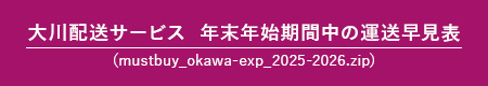 ※年末年始やGWなど長期のお休みがある場合は予定よりも早く出荷することがあります。